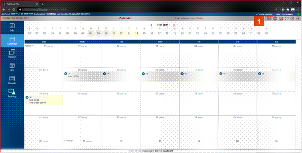 This view displays the days of the week for the bid period, much like a traditional paper calendar.