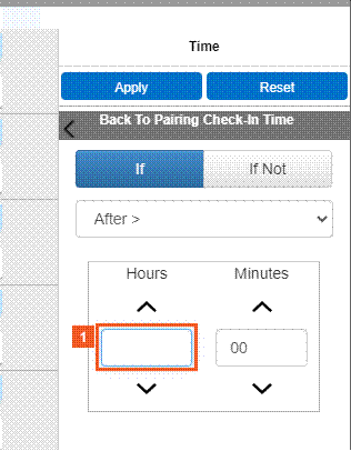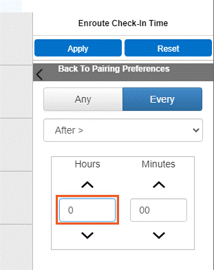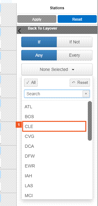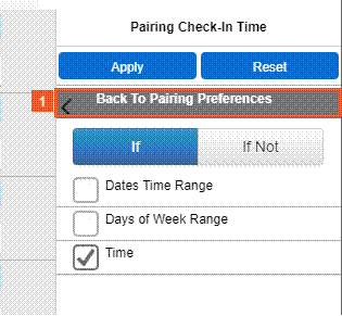 For example, if you select "Exactly 8am", the system filters the vast majority of results and displays only these pairings. It is often better to use the "After", "Before", or "Range" filters instead, as in this example, to avoid overly restricted results.