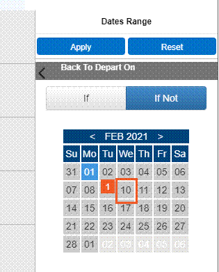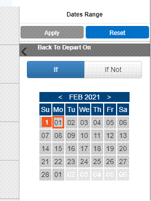 All the pairings that are not in the date range display. The green circles denote the dates that meet this "If Not" criteria.