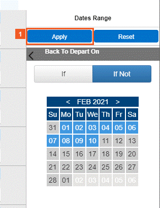 Green circles denote the pairings with dates that meet the defined criteria. Because the date range is the 1st to the 10th, the 7th meets the criteria, and so is highlighted.
