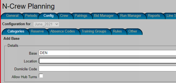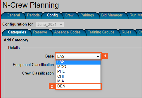 This demonstration begins with adding Denver (DEN) crew categories.