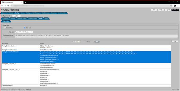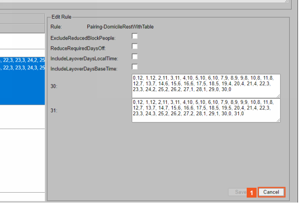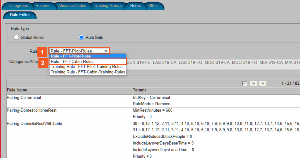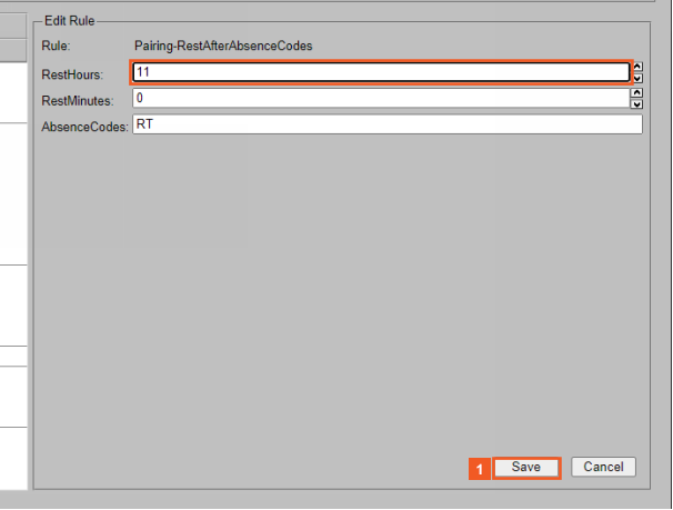 In this scenario, the cabin rules will be selected, and the amount of rest a cabin crew member gets after an absence code will be changed.