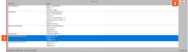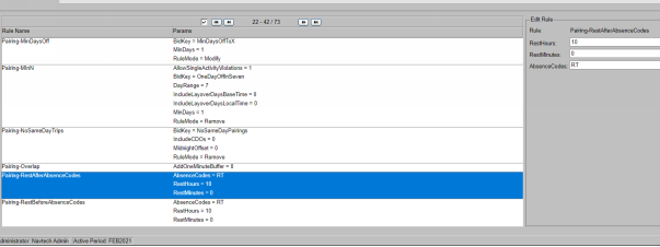 The rule to be changed (PairingRestAfterAbsenceCodes) is not listed on the first screen of rules.