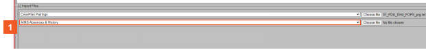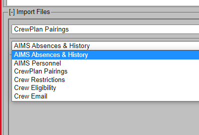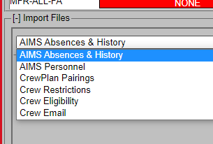 Once the crew data file is loaded, you can load the other data file(s). You typically load the absences and history file next. These files may be separate in your system, or grouped together in a single file, depending upon the customer. In this example, they are loaded as one file.