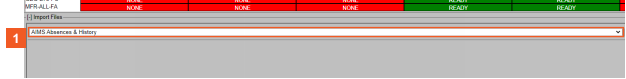 The AIMS Absences & History option is already selected, so we can proceed with file selection.