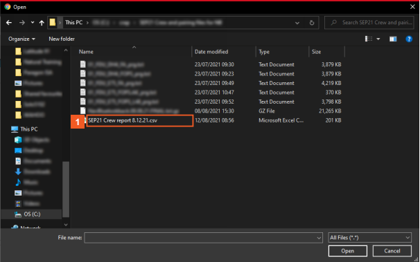 Click the SEP21 Crew report 8.12.21.csv list item.