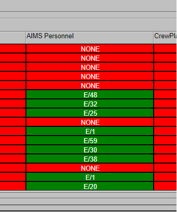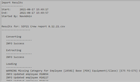 These green bars indicate a successful data load operation. The numbers indicate how many crew members are in each of the listed categories. You can use this information to verify that the number of crew members matches the entries in the crew data file.