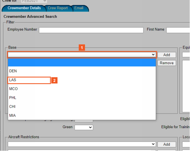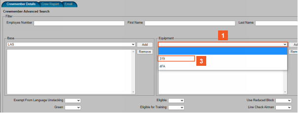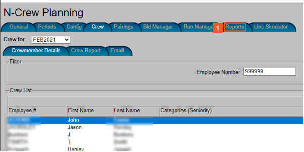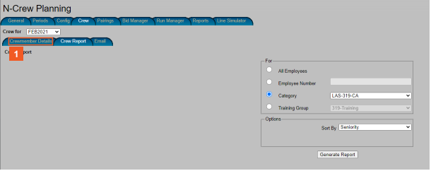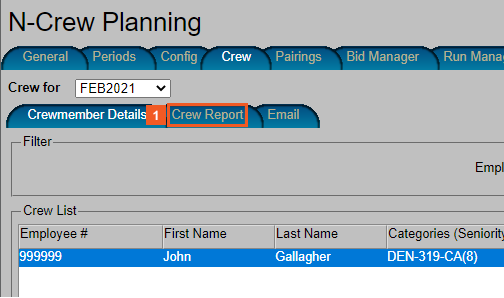 Proceed to the Crew Report tab, where reports can be generated using various criteria.