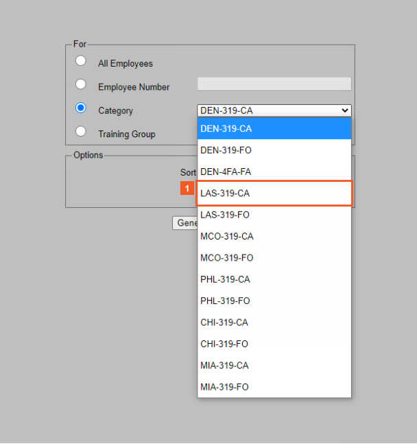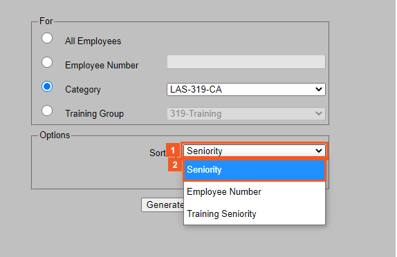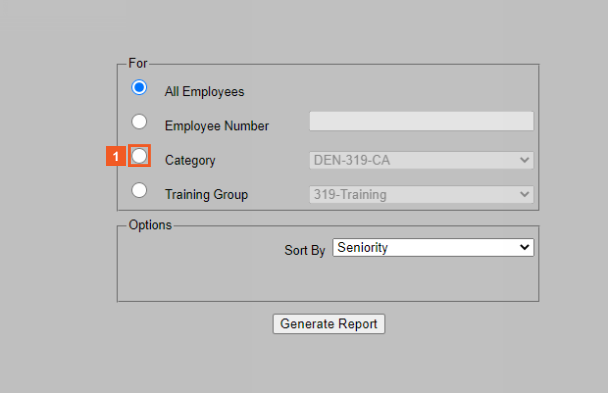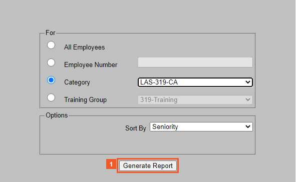 Here you can pull crew reports for all employees, a specific employee number, specific categories of employees or a training group.