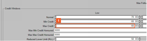 Double-click the Credit Windows > Max Min Credit Honoured input field.