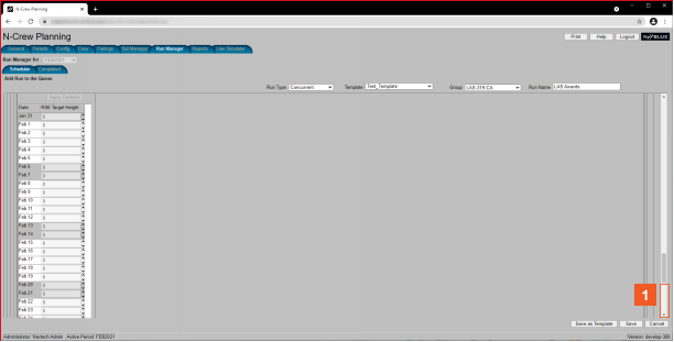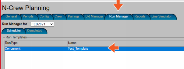The process begins on the Run Manager tab, and an existing template will be used to launch a schedule award for Las Vegas captains.