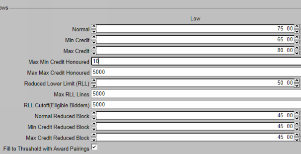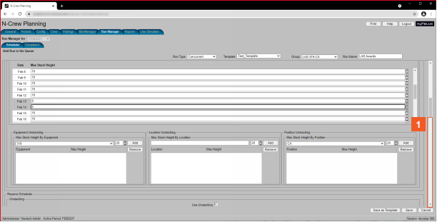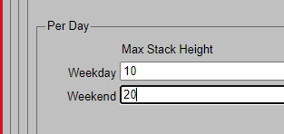 The amount of open pairings per day will be limited using Max Stack Height. In this example, no more than 10 are wanted on weekdays and no more than 8 on weekends. Additionally, February 14th is wanted to be limited to no more than 5 open pairings for the holiday.