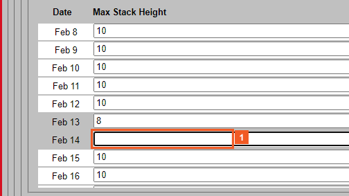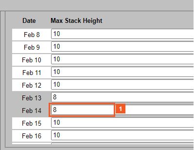 Enter 5 into the Feb 14th | Max Stack Height field.