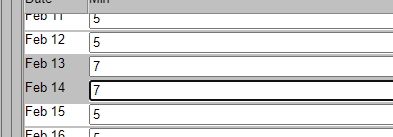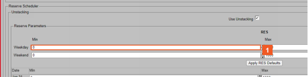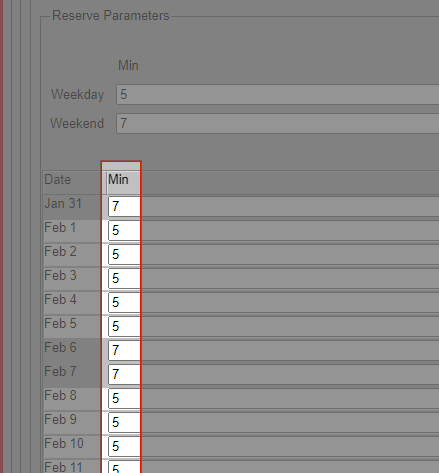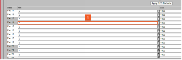 In addition to applying the RES default, any specific date(s) can also be edited to the numbers required. In this example, the reserve number will be increased to 9 on February 14th.
