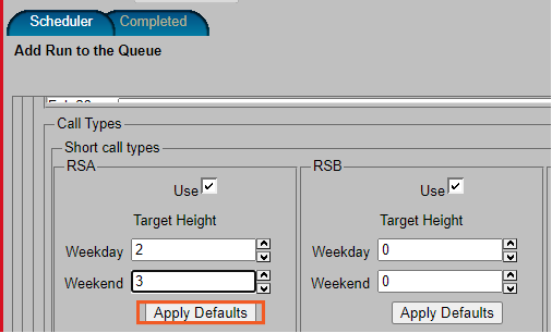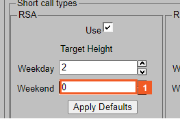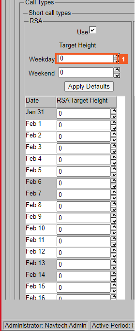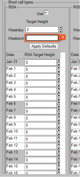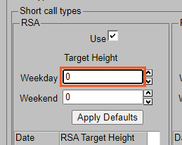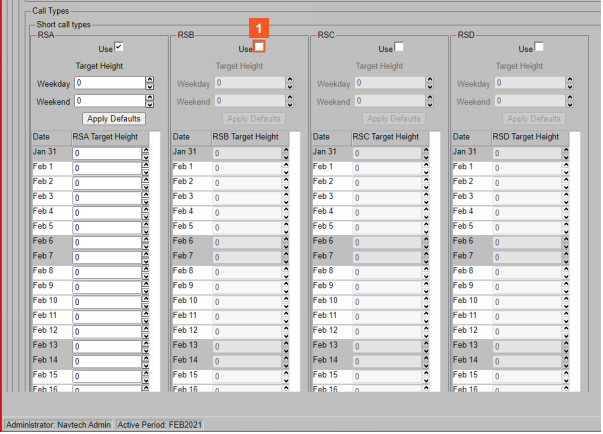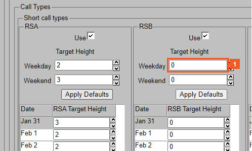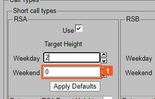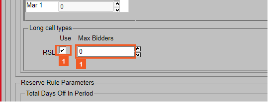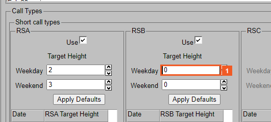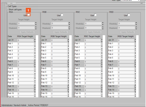 In this section, the reserve short call types to be used for this category are checked. In this example, RSA and RSB will be used, and the target reserve numbers for the call type will be set.