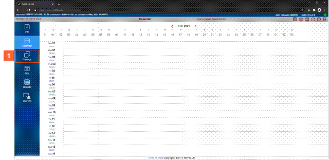 The Information screen appears by default when you open the NAVBLUE Peer Bidding System. This section describes the different navigation options. Further details on these screens appear throughout the topic.