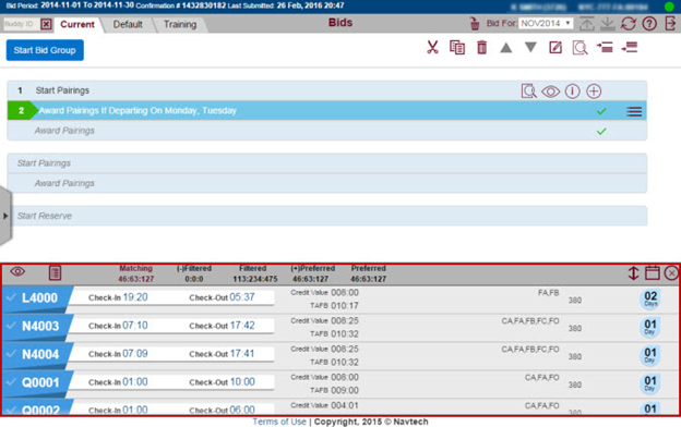 The dates view option allows you to see the bid preference that adds a pairing to the Filtered or Preferred pool.