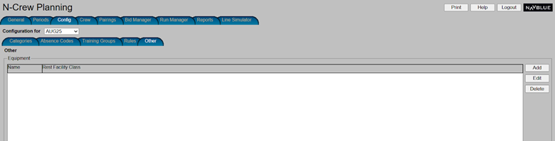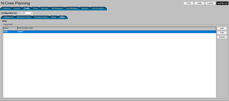 This screen allows administrators the ability to add, edit, and delete a facility class to an equipment type. If there is no rest facility on the equipment type, the N-PBS Scheduler will use Class 3 as a default.