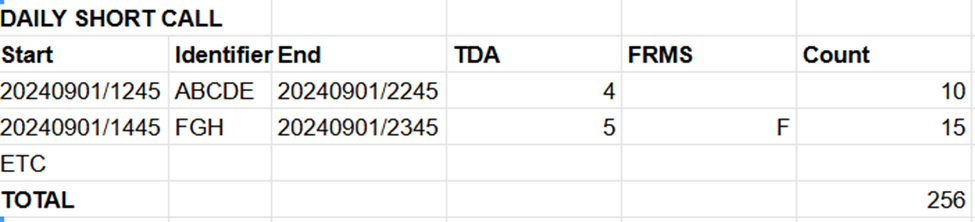 THEN - the number of lines for each Call Type, and the ReserveCallTypeCoverage table with Short Call Items displays.