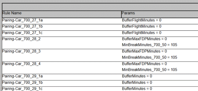This change is not reflected in NAVBLUE’s configuration spreadsheets or documentation to prevent the addition of excessive rows. Instead, all new rules include the "IsActive" parameter by default.