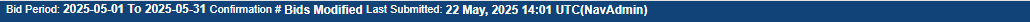 THEN you will see the Status: Submitted with Confirmation number: xxxxxxx with no changes to the bid submission pop-up .