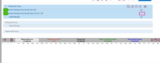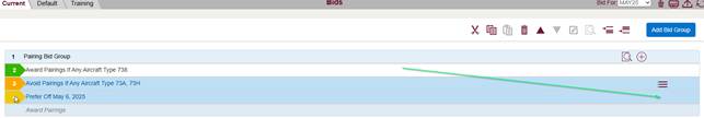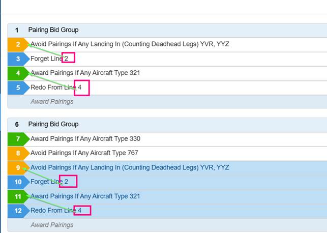 Resolved an issue where Forget Line and Redo From Line displayed incorrect visual indicators when copied into a pre-populated Pairing Bid Group.