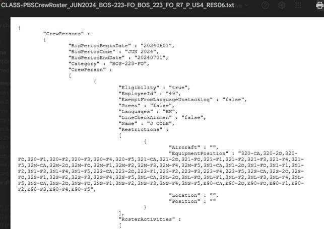 Fixed a defect where the PBS Crew Roster Export was generating files with a .txt extension. The system has been updated to correctly trigger the .json file generation logic, ensuring the exported file matches the format specified on the button.